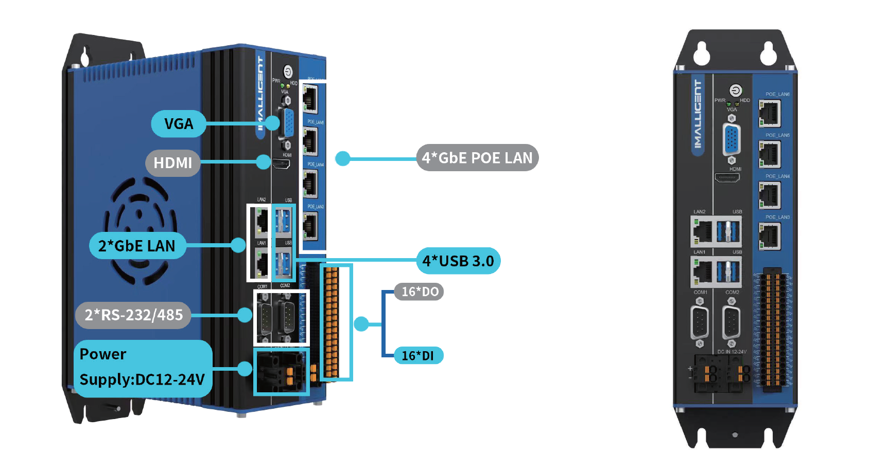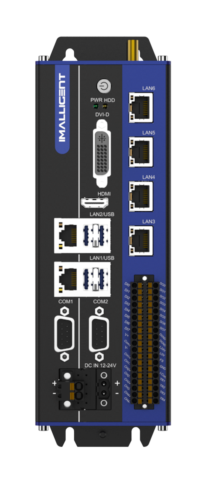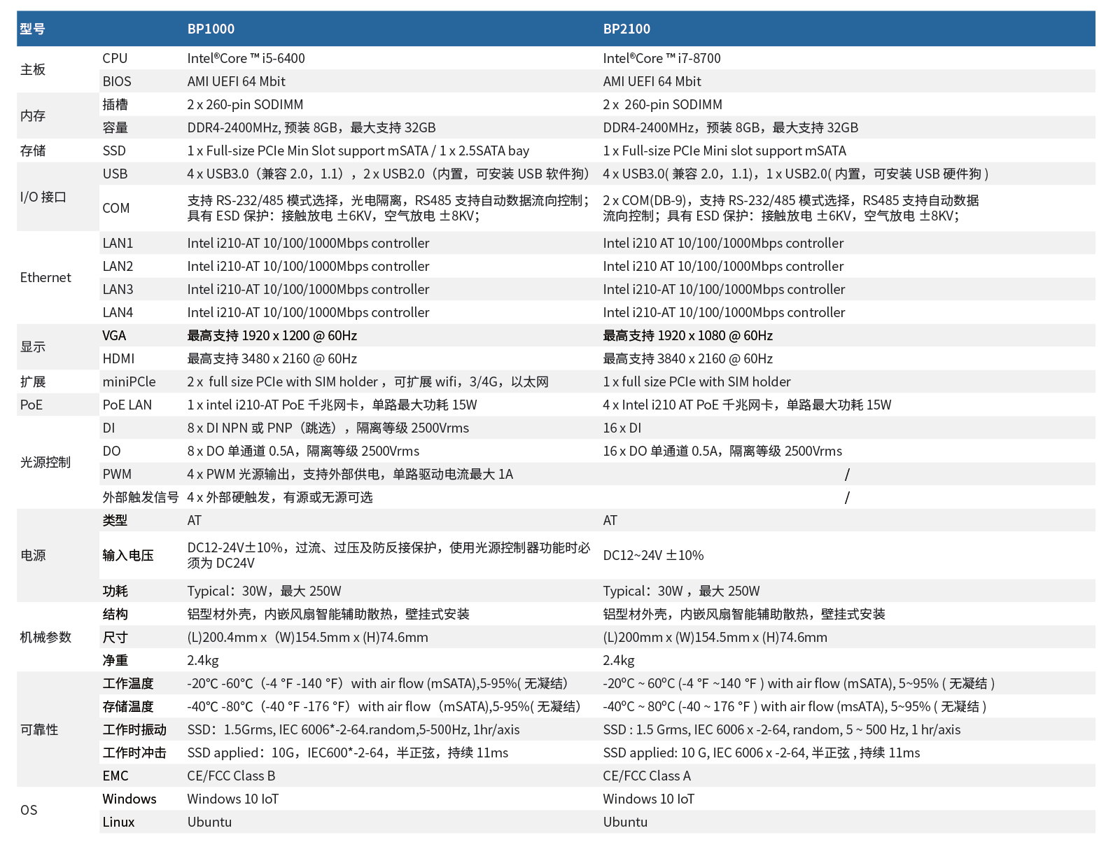 珩图科技BP系列视觉控制器将高性能视觉控制及光源控制功能融为一体,使其成为高计算能力,高实时性以及多功能性的完美视觉控制器。提供独立的Intel i210AT PoE千兆网口,4路光源PWM控制接口;4路光源外部触发信号输入;16路隔离DI/DO可供进行功能自定义,可广泛应用于多种视觉场景。